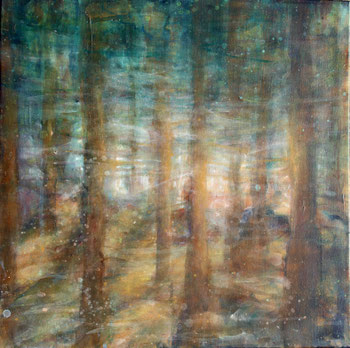 deep forest and light, evening